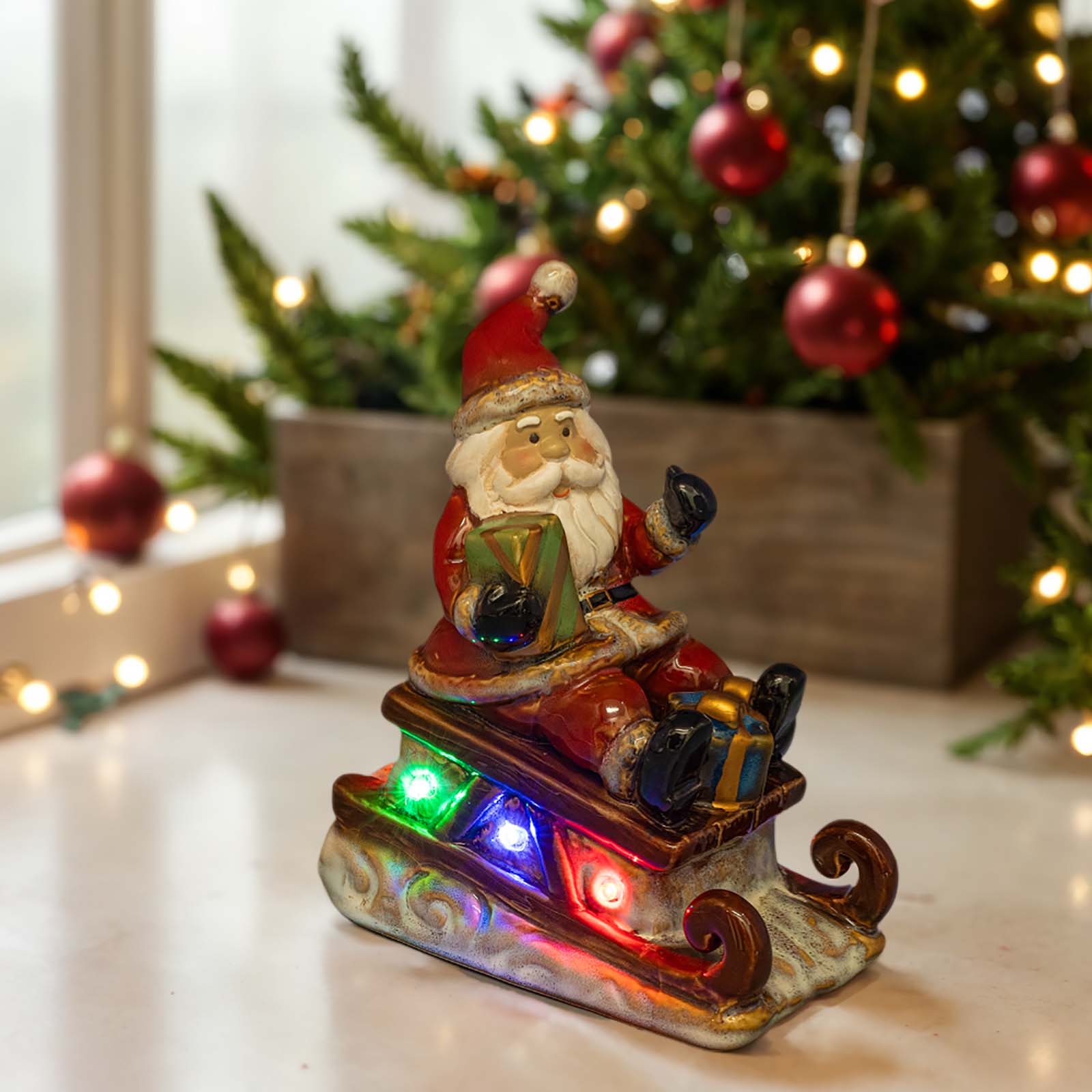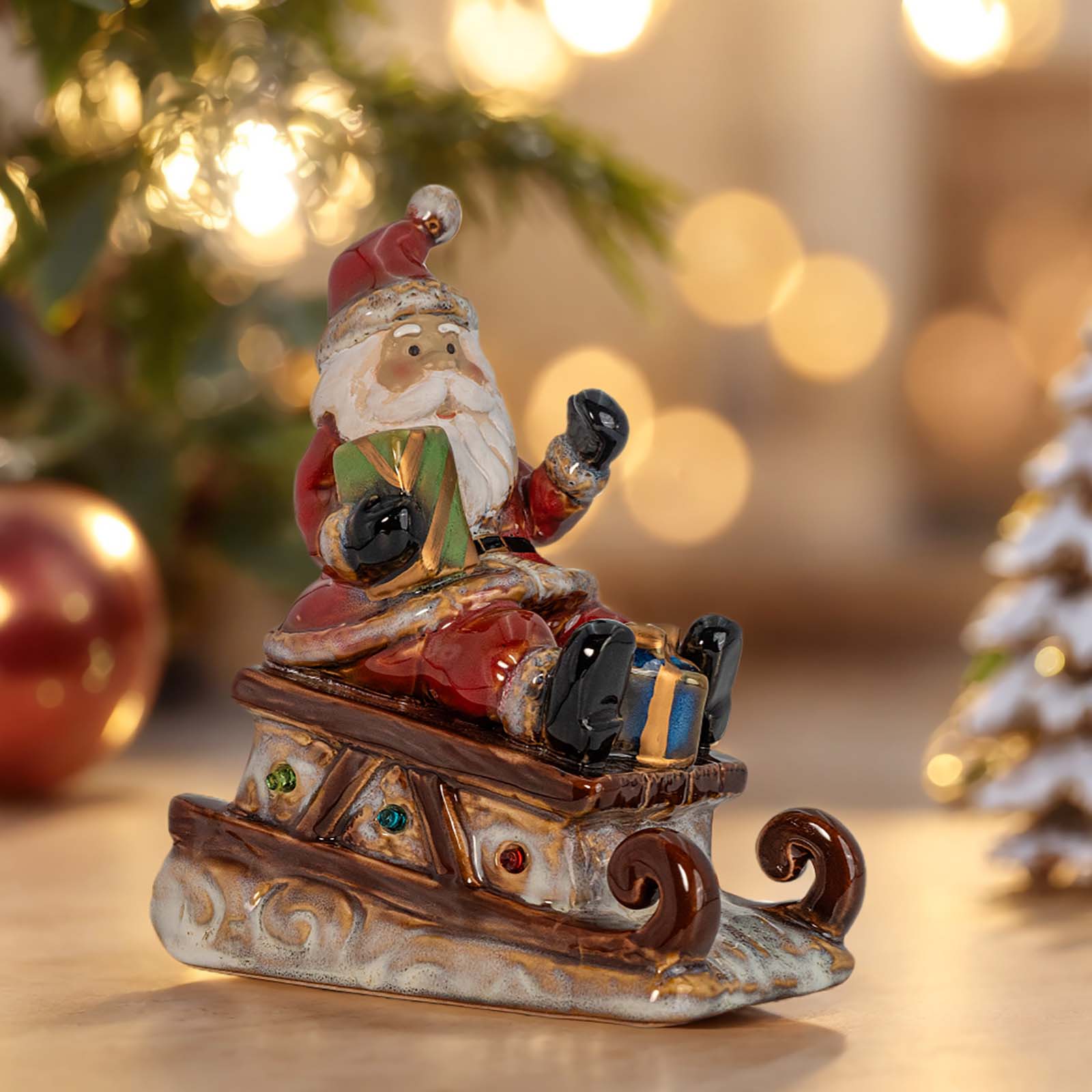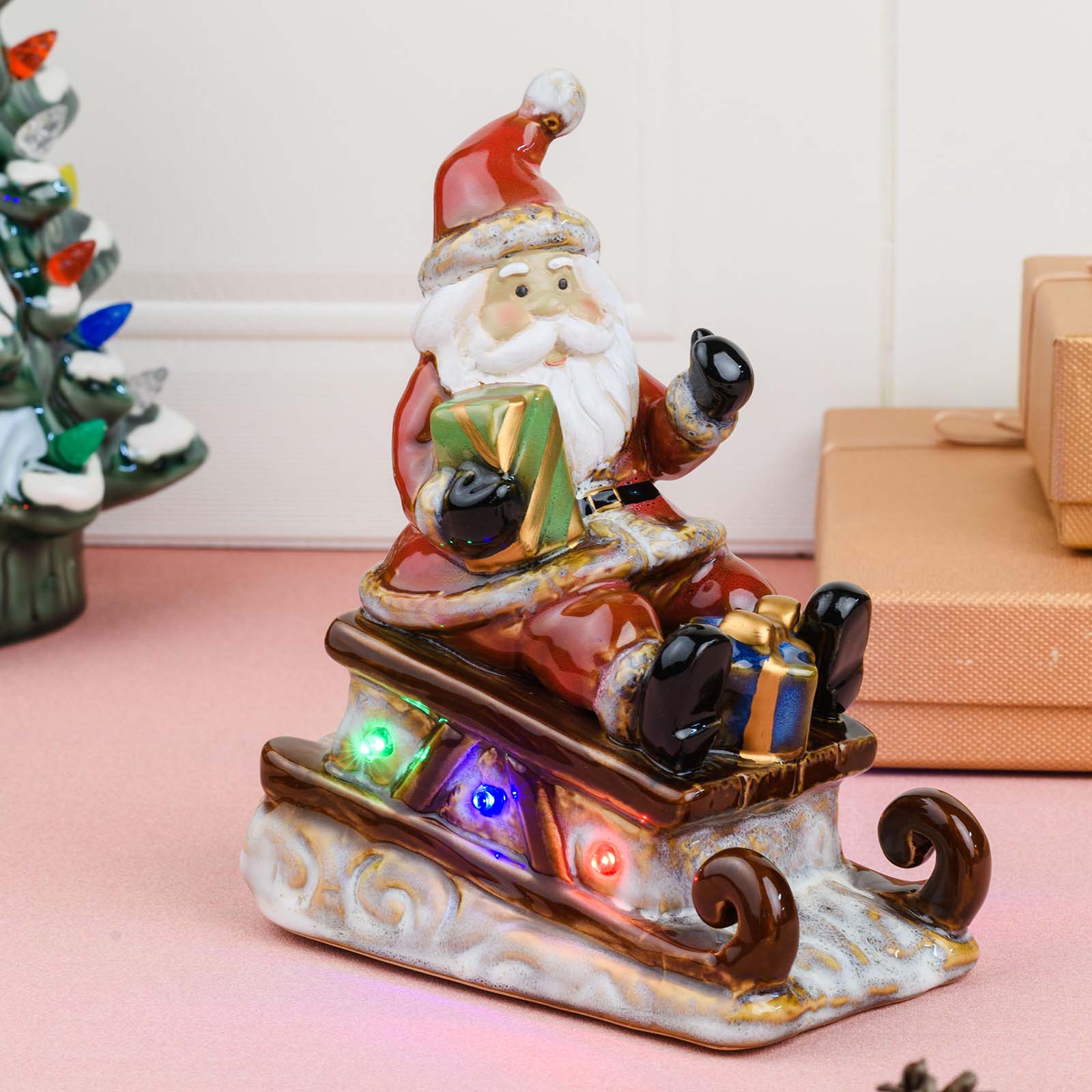 Santa Claus LED Figurine - Lighted Ceramic Christmas Table Decoration