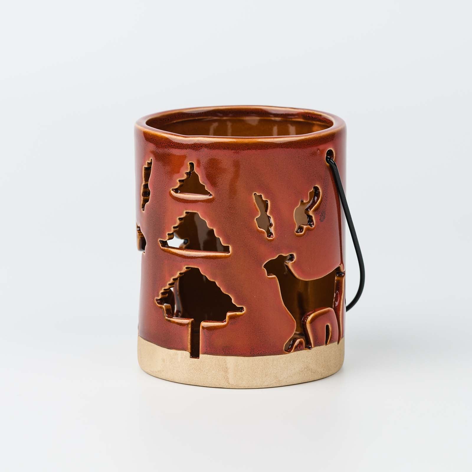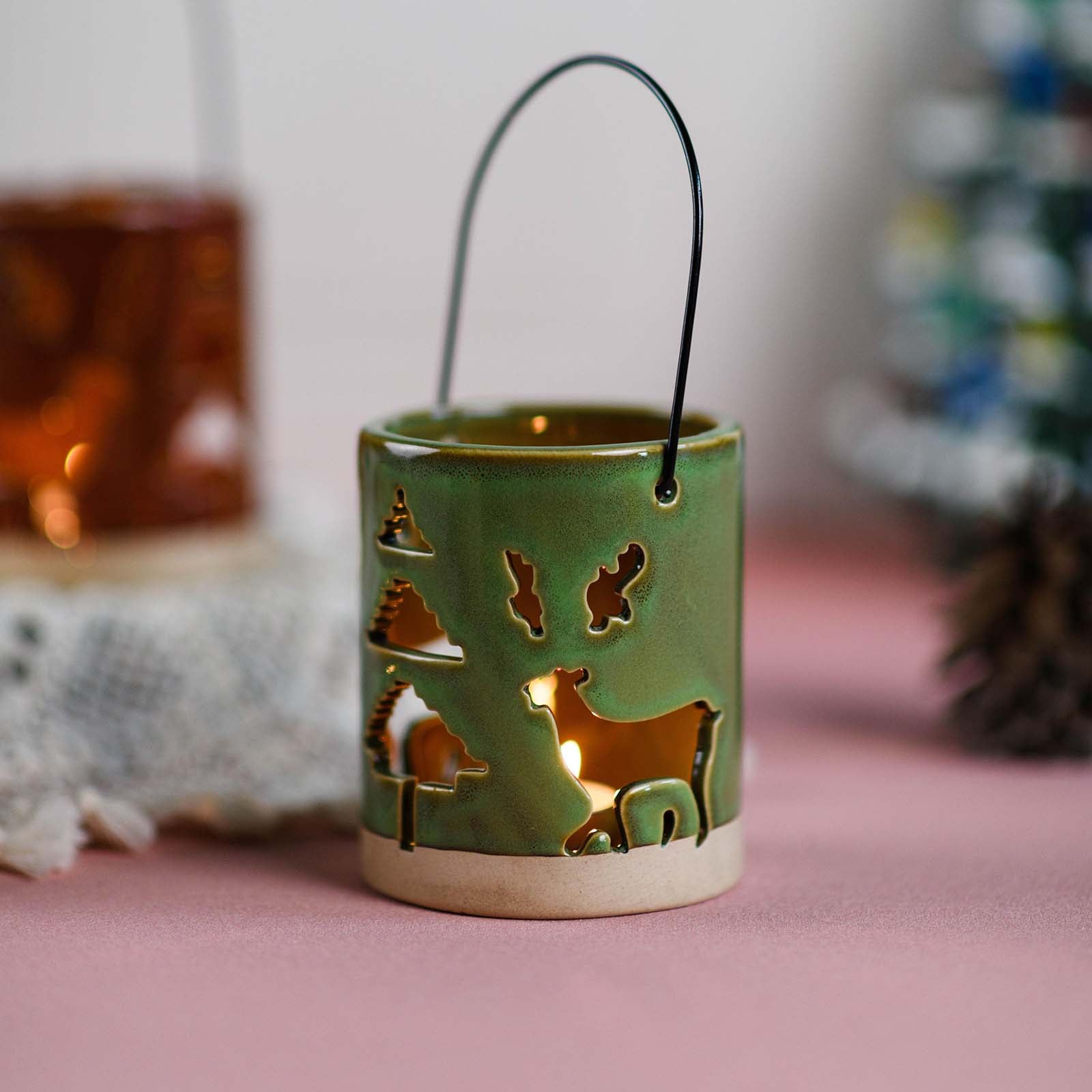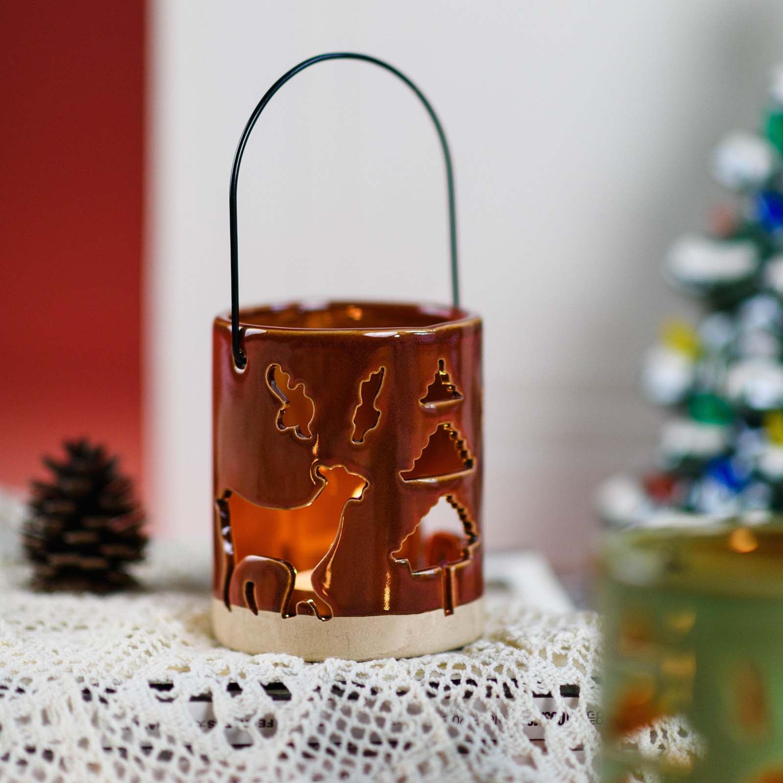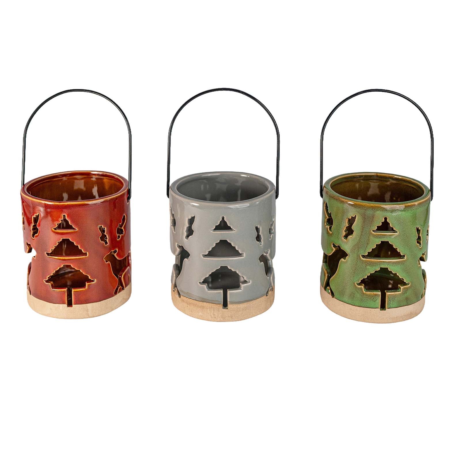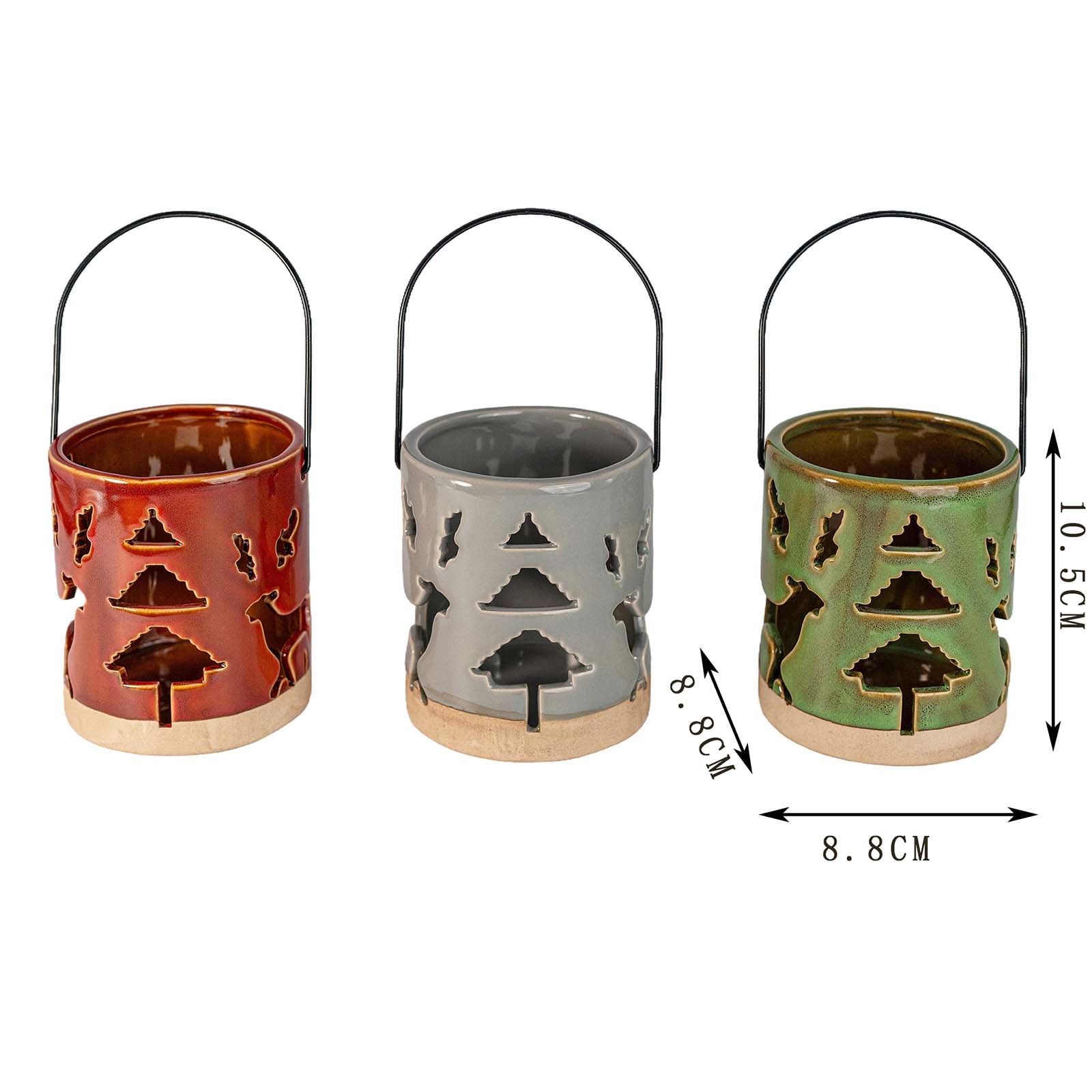 Ceramic Deer Candle Holder Set of 3 – Rustic Christmas Lantern Décor