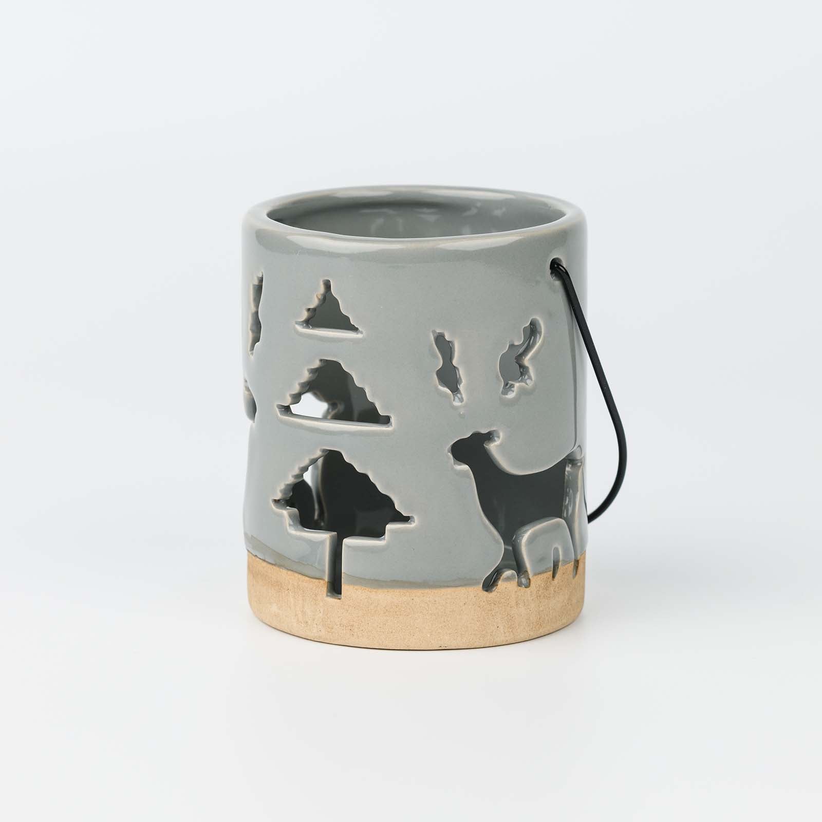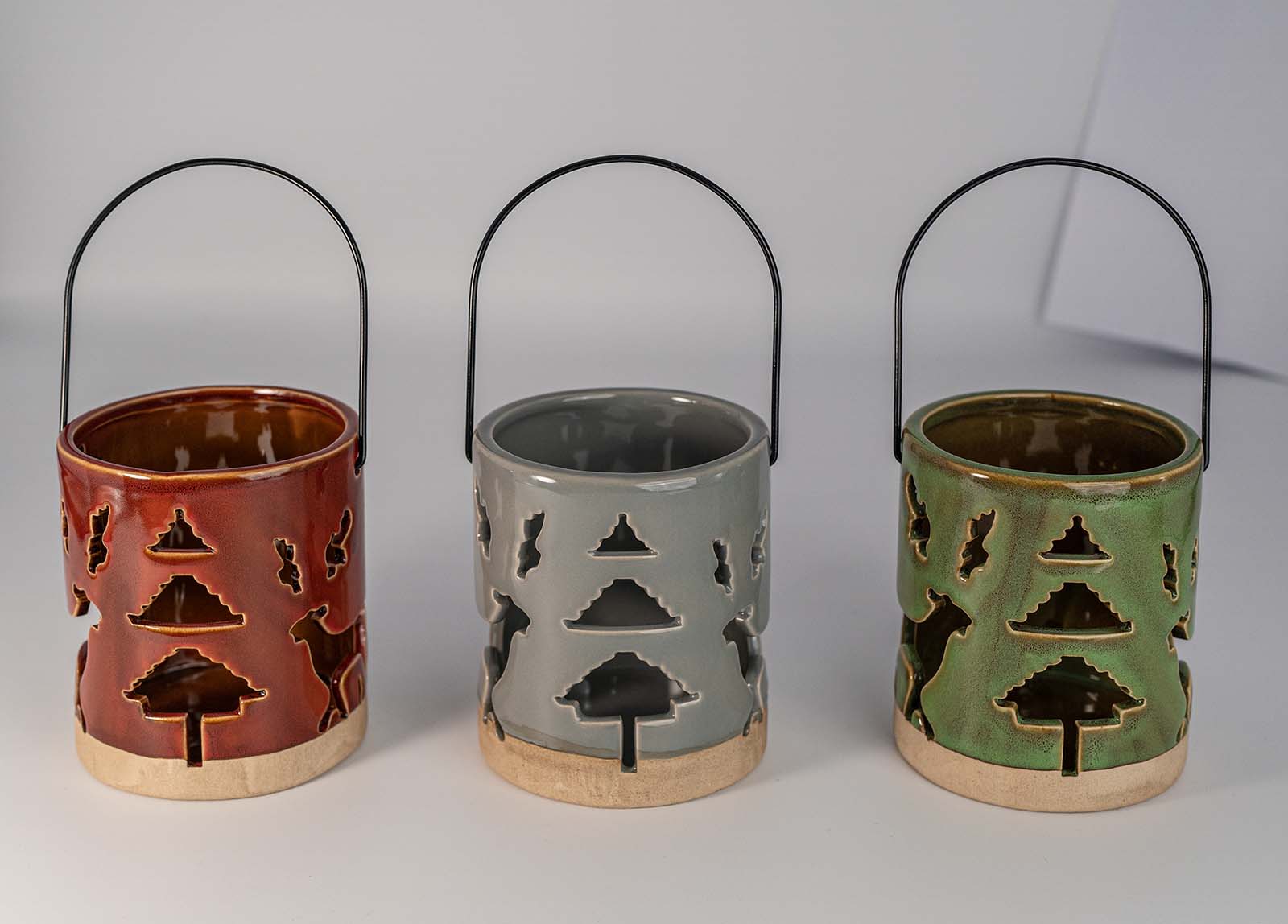 A charming set of three ceramic candle holders featuring forest-themed cutouts of deer and trees that cast a warm, festive... Read more
