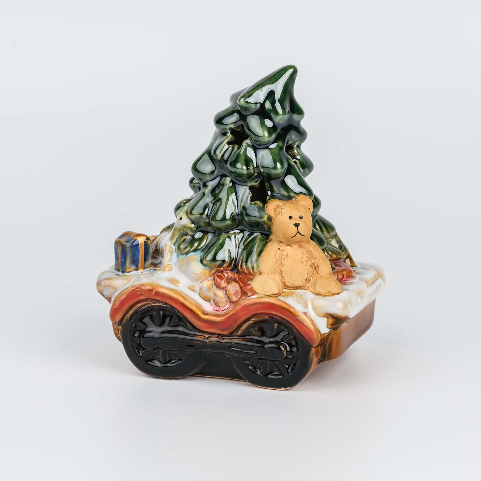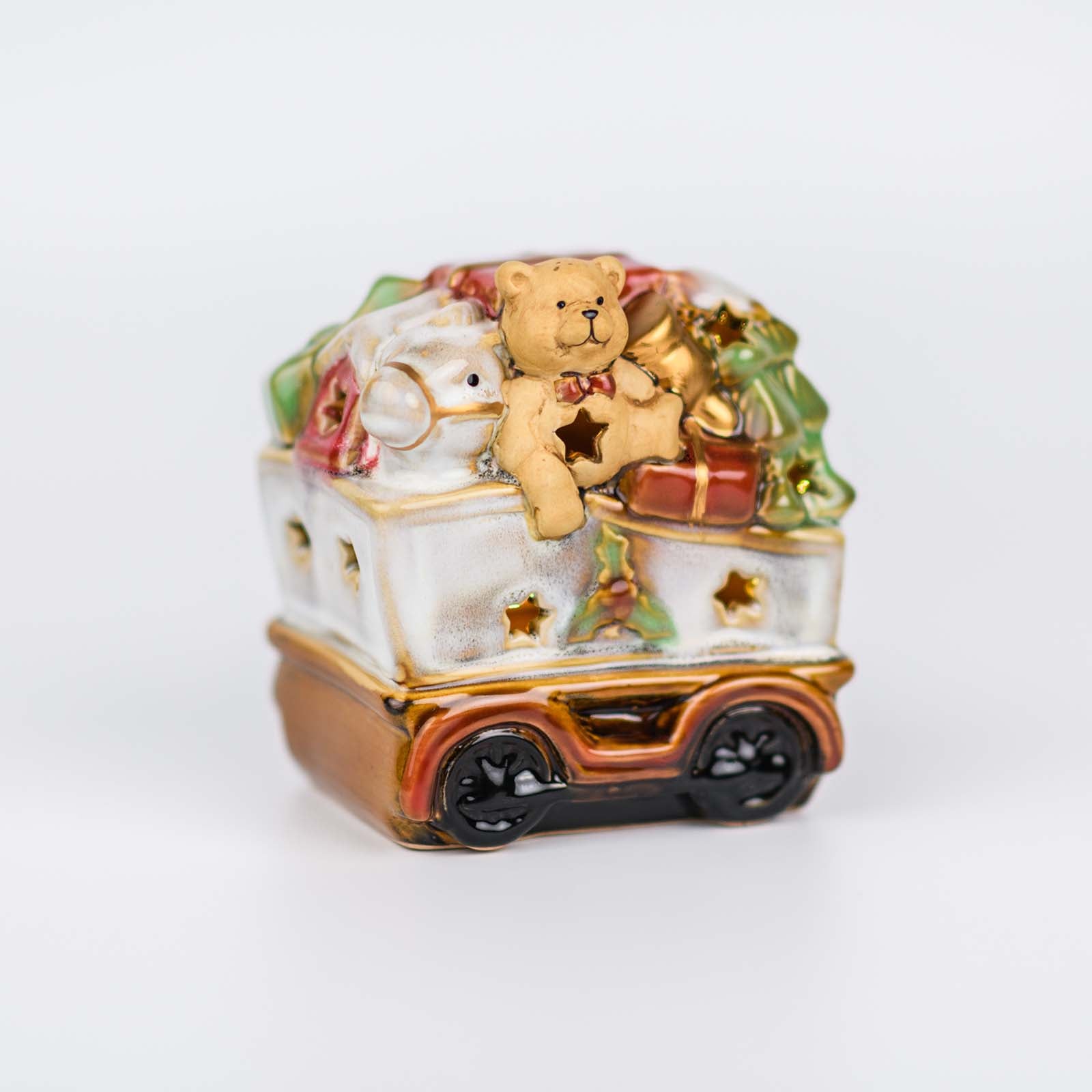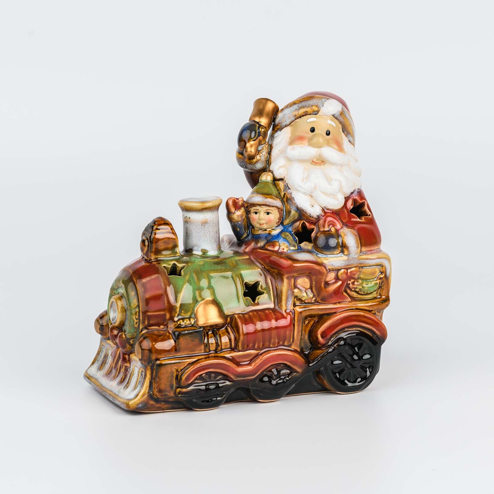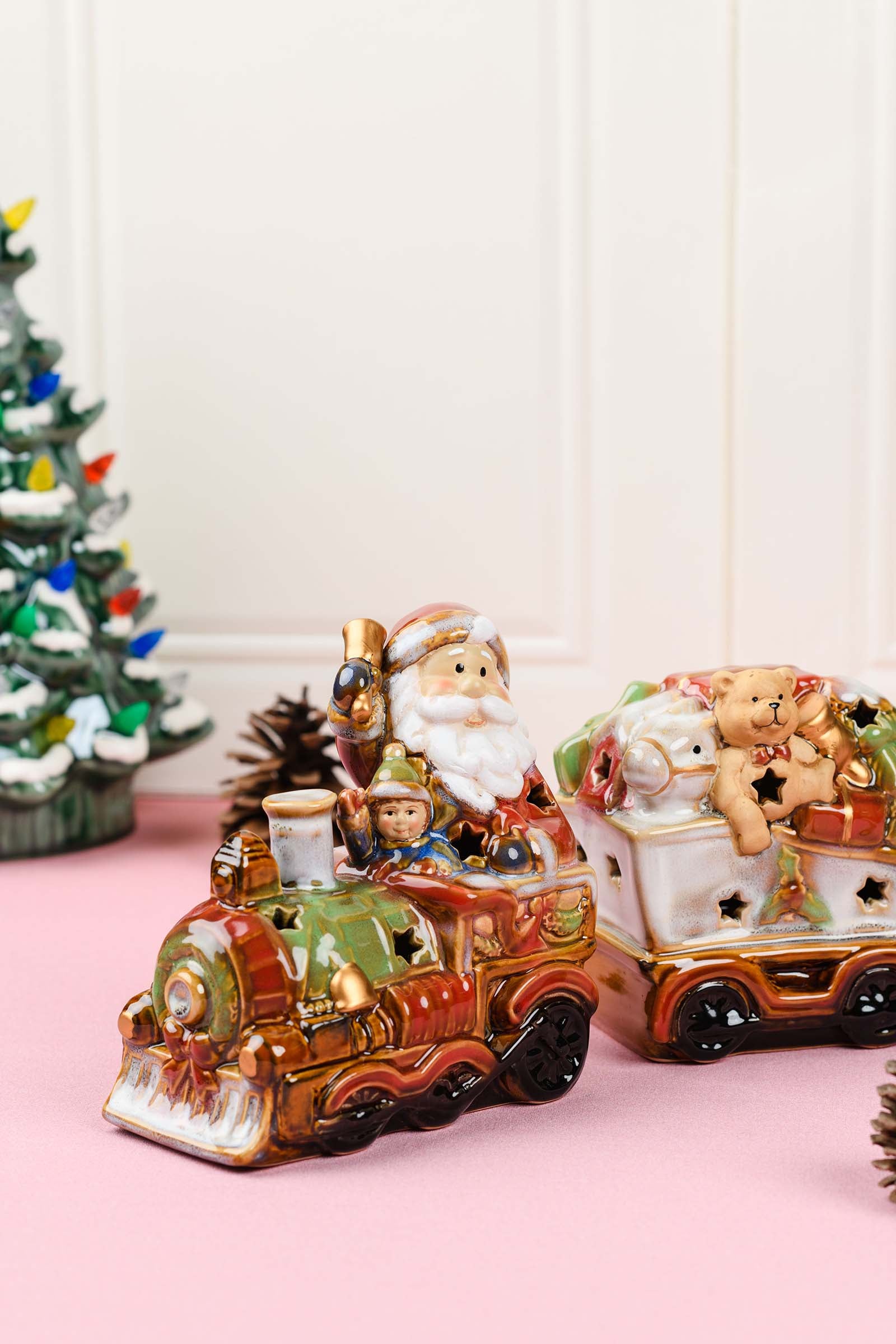 A charming Santa Claus driving a train ceramic figurine, loaded with gifts and a Christmas tree. This unique holiday decor... Read more